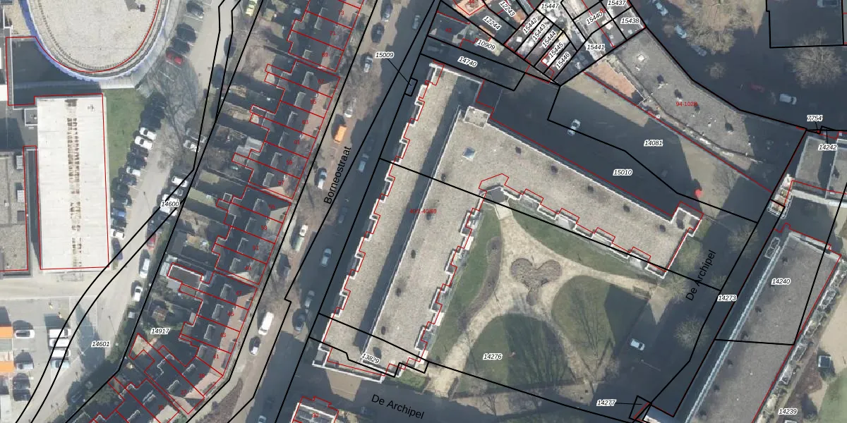 Het perceel waarop Borneostraat 40-5 staat heeft een oppervlakte van 3261 m². Dit is een zeer groot perceel. De perceeloppervlakte wordt geregistreerd door het Kadaster. Gedetailleerde informatie over de maten van dit perceel kunt u vinden in het rapport Kadastrale kaart met maatvoering van Borneostraat 40-5.