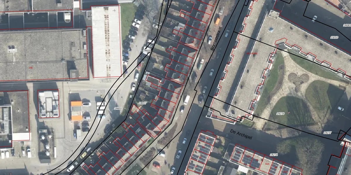 Het perceel waarop Borneostraat 47 staat heeft een oppervlakte van 5669 m². Dit is een zeer groot perceel. De perceeloppervlakte wordt geregistreerd door het Kadaster. Gedetailleerde informatie over de maten van dit perceel kunt u vinden in het rapport Kadastrale kaart met maatvoering van Borneostraat 47.