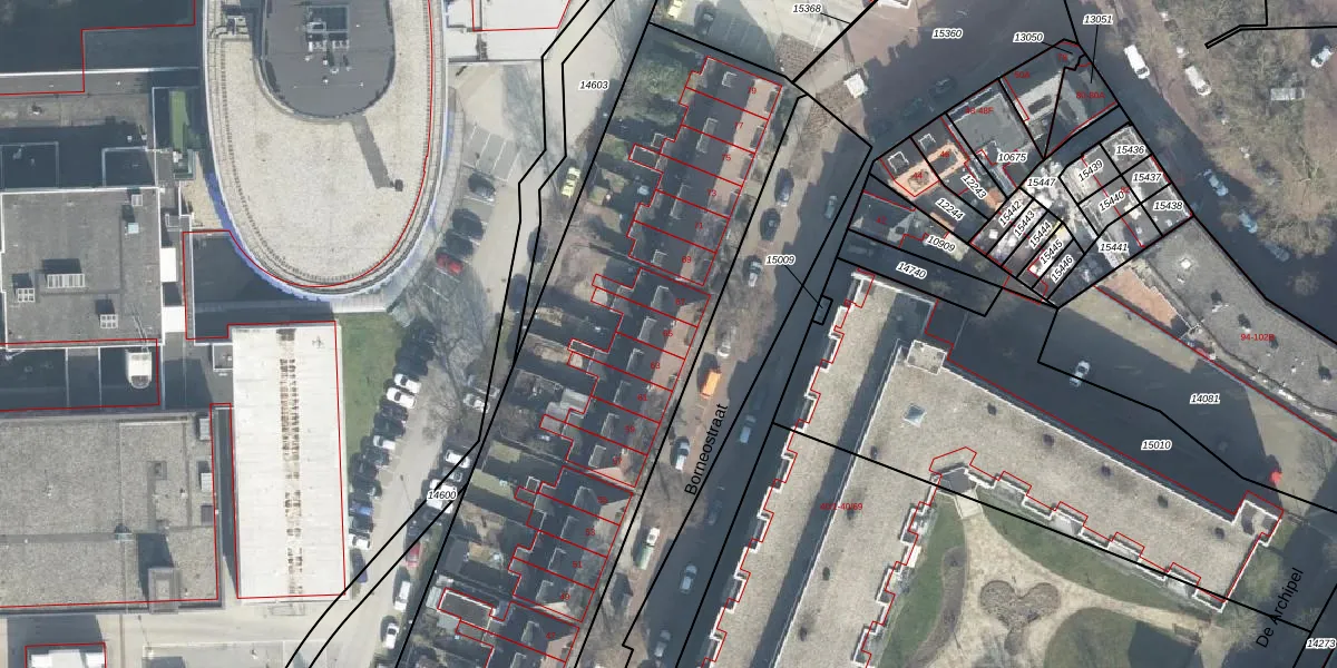 Het perceel waarop Borneostraat 65 staat heeft een oppervlakte van 5669 m². Dit is een zeer groot perceel. De perceeloppervlakte wordt geregistreerd door het Kadaster. Gedetailleerde informatie over de maten van dit perceel kunt u vinden in het rapport Kadastrale kaart met maatvoering van Borneostraat 65.
