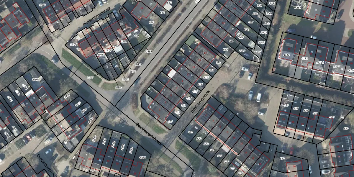 Het perceel waarop Boskamphoek 7 staat heeft een oppervlakte van 125 m². Dit is een middelgroot perceel. De perceeloppervlakte wordt geregistreerd door het Kadaster. Gedetailleerde informatie over de maten van dit perceel kunt u vinden in het rapport Kadastrale kaart met maatvoering van Boskamphoek 7.