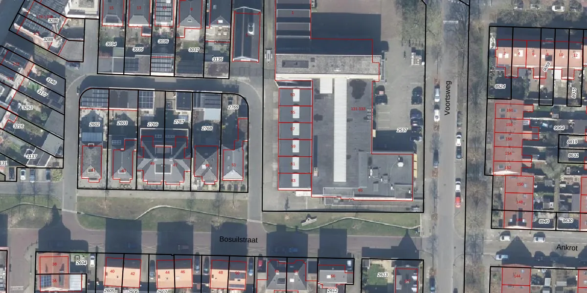 Het perceel waarop Bosuilstraat 59 staat heeft een oppervlakte van 4081 m². Dit is een zeer groot perceel. De perceeloppervlakte wordt geregistreerd door het Kadaster. Gedetailleerde informatie over de maten van dit perceel kunt u vinden in het rapport Kadastrale kaart met maatvoering van Bosuilstraat 59.