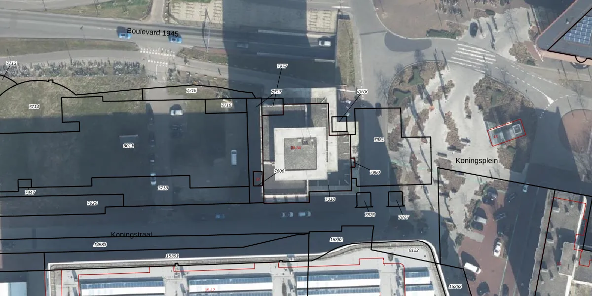 Het perceel waarop Boulevard 1945 20 staat heeft een oppervlakte van 843 m². Dit is een groot perceel. De perceeloppervlakte wordt geregistreerd door het Kadaster. Gedetailleerde informatie over de maten van dit perceel kunt u vinden in het rapport Kadastrale kaart met maatvoering van Boulevard 1945 20.