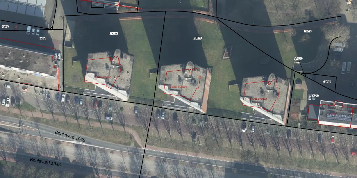 Het perceel waarop Boulevard 1945 365-101 staat heeft een oppervlakte van 3595 m². Dit is een zeer groot perceel. De perceeloppervlakte wordt geregistreerd door het Kadaster. Gedetailleerde informatie over de maten van dit perceel kunt u vinden in het rapport Kadastrale kaart met maatvoering van Boulevard 1945 365-101.