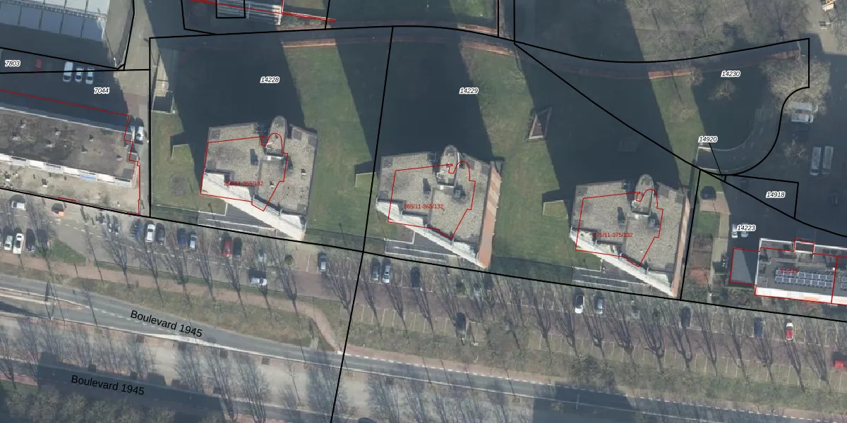 Het perceel waarop Boulevard 1945 365-121 staat heeft een oppervlakte van 3595 m². Dit is een zeer groot perceel. De perceeloppervlakte wordt geregistreerd door het Kadaster. Gedetailleerde informatie over de maten van dit perceel kunt u vinden in het rapport Kadastrale kaart met maatvoering van Boulevard 1945 365-121.