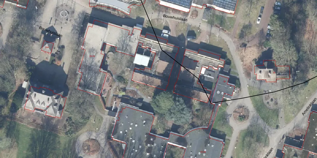 Het perceel waarop Bouwhuislaan 30 staat heeft een oppervlakte van 12,4 ha. Dit is een zeer groot perceel. De perceeloppervlakte wordt geregistreerd door het Kadaster. Gedetailleerde informatie over de maten van dit perceel kunt u vinden in het rapport Kadastrale kaart met maatvoering van Bouwhuislaan 30.