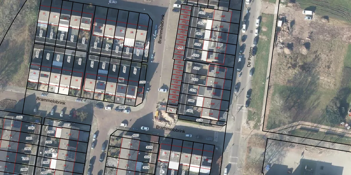 Brammelobrink 75-D is gelegen op kadastraal perceel LNK00Z524. Deze kadastrale aanduiding is uniek en wordt gebruikt door het Kadaster om eigendomsrechten en andere zakelijke rechten vast te leggen. Het perceel maakt onderdeel uit van de kadastrale gemeente Lonneker.