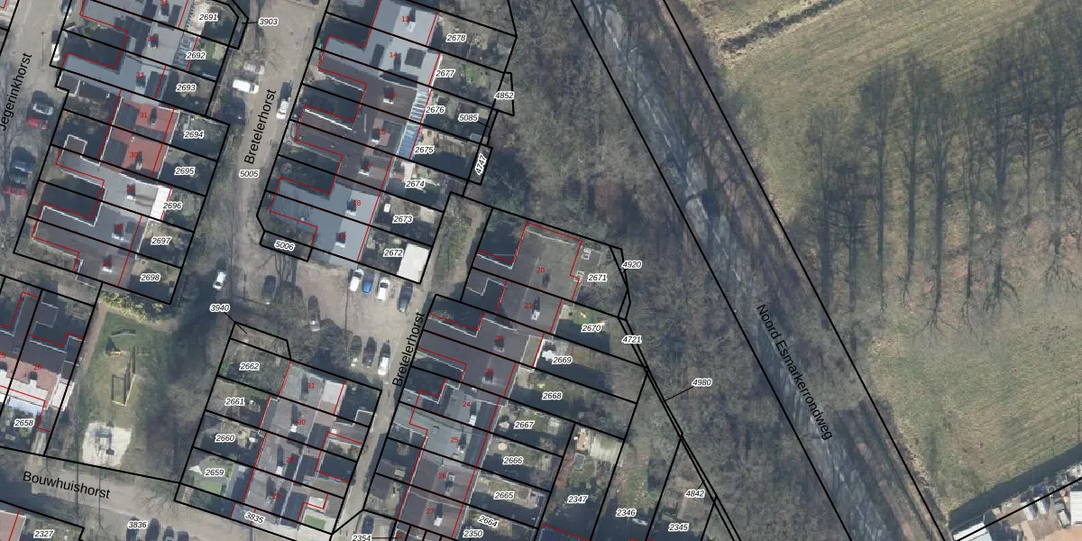 Het perceel waarop Bretelerhorst 20 staat heeft een oppervlakte van 321 m². Dit is een groot perceel. De perceeloppervlakte wordt geregistreerd door het Kadaster. Gedetailleerde informatie over de maten van dit perceel kunt u vinden in het rapport Kadastrale kaart met maatvoering van Bretelerhorst 20.