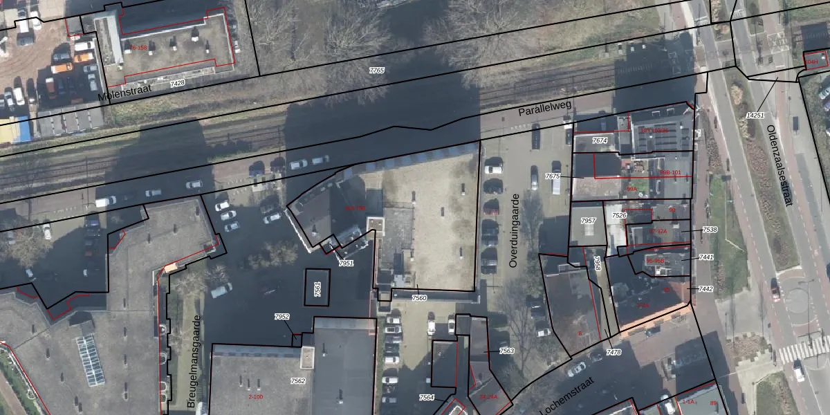Het perceel waarop het adres ligt is ESD00-B-7560. De afkorting 'ESD00' staat voor kadastrale gemeente Enschede. De oppervlakte van het perceel is 1130 m². Dat is groter dan gemiddeld in Enschede, waar de gemiddelde perceeloppervlakte op 548,05 m² ligt. Het kleinste perceel in de kadastrale gemeente is 0 m² groot. De grootste perceeloppervlakte is 10,7 ha. Op het perceel liggen in totaal 44 adressen. De laatste wijziging in het de Basisregistratie Kadaster (BRK) was op 14-11-2013.