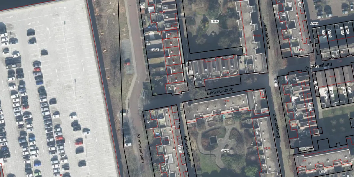 Het adres ligt op het perceel ESD00-D-13985, dat zich in de kadastrale gemeente Enschede bevindt. Het perceel is met 1167 m² relatief groot. Het gemiddelde ligt in de kadastrale gemeente Enschede op 546,2 m². De grootste perceeloppervlakte in de kadastrale gemeente is 10,7 ha. De kleinste oppervlakte bedraagt 0 m². Er zijn 16 adressen aanwezig op het perceel. De huidige grenzen van het perceel zijn digitaal in de Basisregistratie Kadaster (BRK) geregistreerd op 14-04-2010.