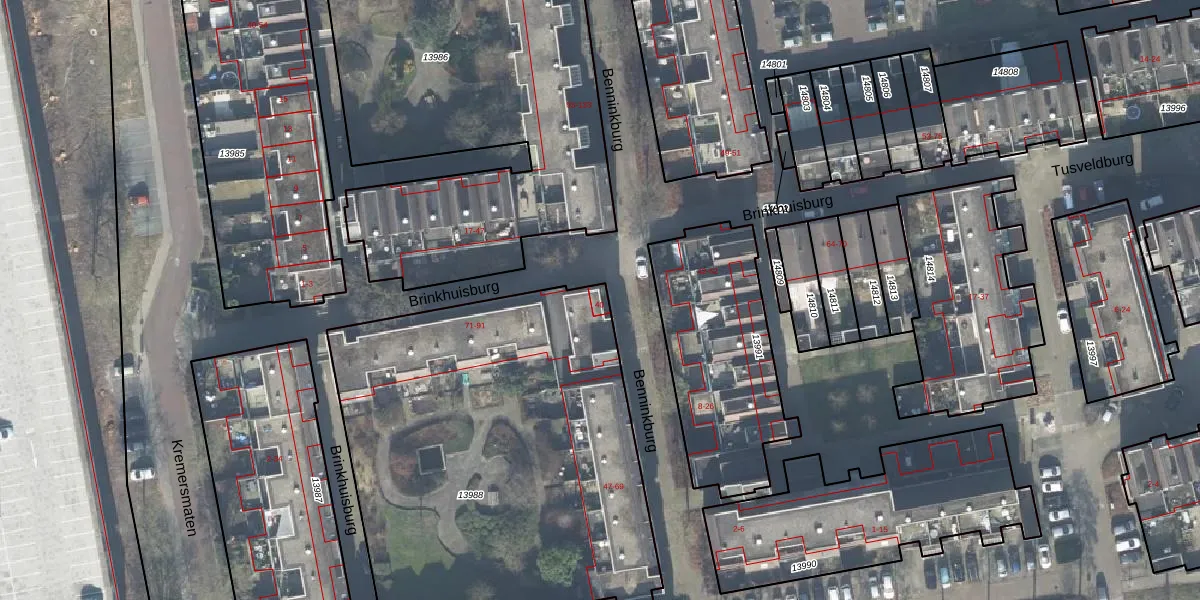 Het perceel waarop Brinkhuisburg 40 staat heeft een oppervlakte van 2495 m². Dit is een zeer groot perceel. De perceeloppervlakte wordt geregistreerd door het Kadaster. Gedetailleerde informatie over de maten van dit perceel kunt u vinden in het rapport Kadastrale kaart met maatvoering van Brinkhuisburg 40.