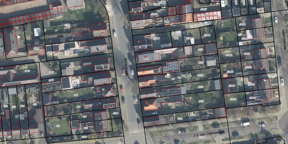 Brinkstraat 357 is gelegen op kadastraal perceel LNK00O9140. Deze kadastrale aanduiding is uniek en wordt gebruikt door het Kadaster om eigendomsrechten en andere zakelijke rechten vast te leggen. Het perceel maakt onderdeel uit van de kadastrale gemeente Lonneker.
