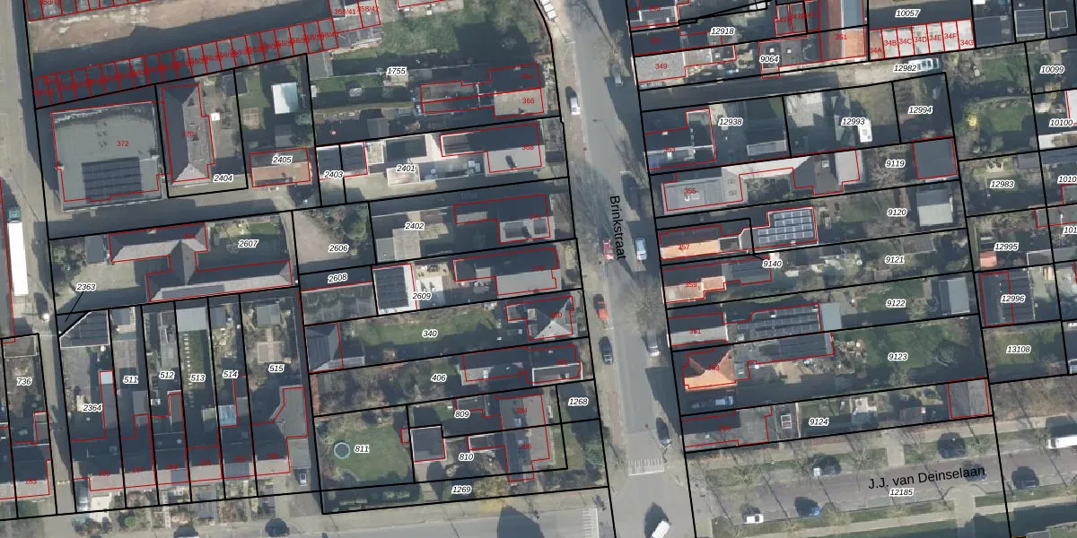 Het perceel waarop Brinkstraat 376 staat heeft een oppervlakte van 364 m². Dit is een groot perceel. De perceeloppervlakte wordt geregistreerd door het Kadaster. Gedetailleerde informatie over de maten van dit perceel kunt u vinden in het rapport Kadastrale kaart met maatvoering van Brinkstraat 376.