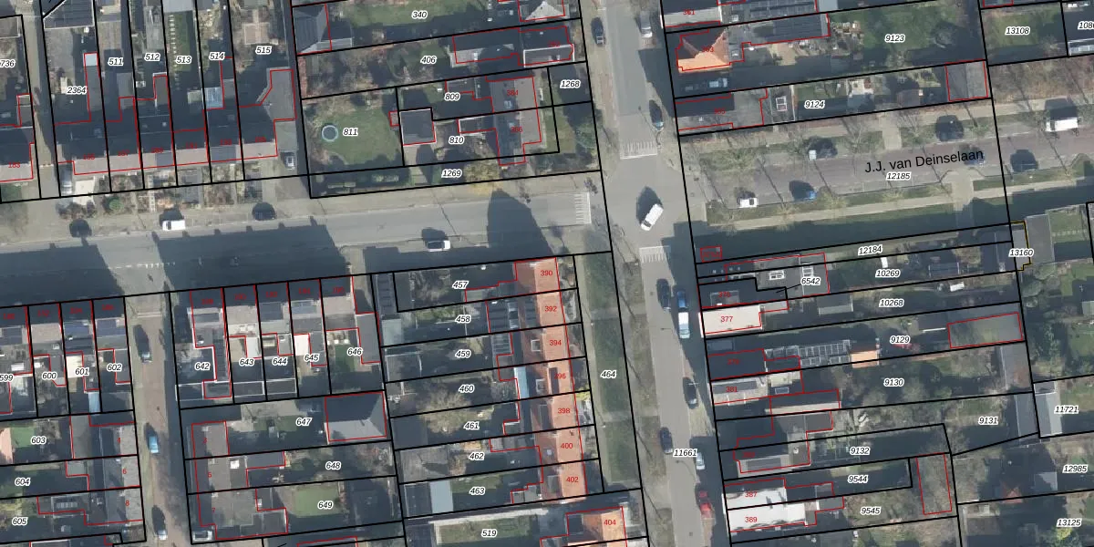 Gebruik de zoekbalk of klik op een perceel voor informatie over de adressen binnen dit perceel.