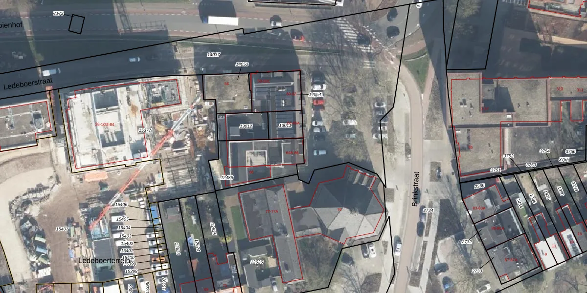 Het perceel waarop Brinkstraat 66 staat heeft een oppervlakte van 437 m². Dit is een groot perceel. De perceeloppervlakte wordt geregistreerd door het Kadaster. Gedetailleerde informatie over de maten van dit perceel kunt u vinden in het rapport Kadastrale kaart met maatvoering van Brinkstraat 66.