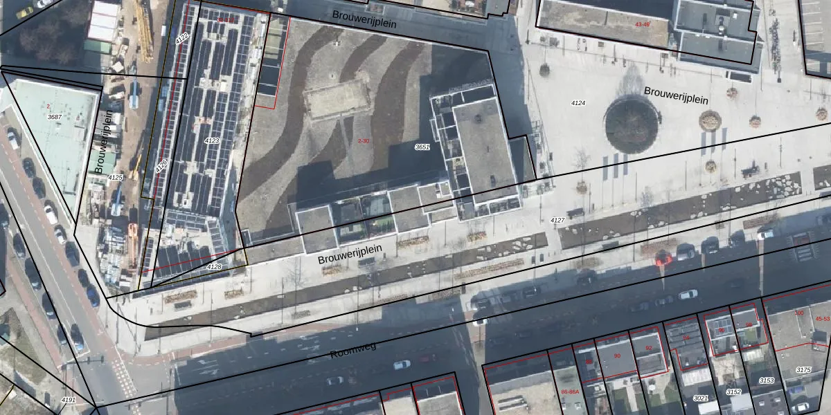 Het perceel waarop Brouwerijplein 20-44 staat heeft een oppervlakte van 2772 m². Dit is een zeer groot perceel. De perceeloppervlakte wordt geregistreerd door het Kadaster. Gedetailleerde informatie over de maten van dit perceel kunt u vinden in het rapport Kadastrale kaart met maatvoering van Brouwerijplein 20-44.