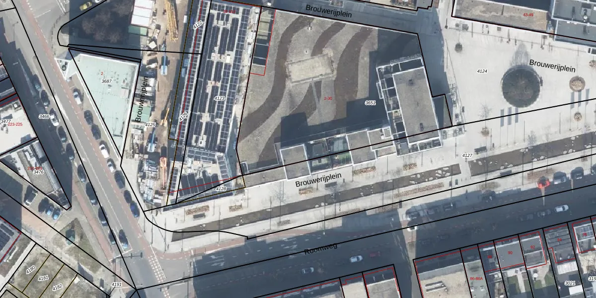 Het perceel waarop Brouwerijplein 20-51 staat heeft een oppervlakte van 2772 m². Dit is een zeer groot perceel. De perceeloppervlakte wordt geregistreerd door het Kadaster. Gedetailleerde informatie over de maten van dit perceel kunt u vinden in het rapport Kadastrale kaart met maatvoering van Brouwerijplein 20-51.