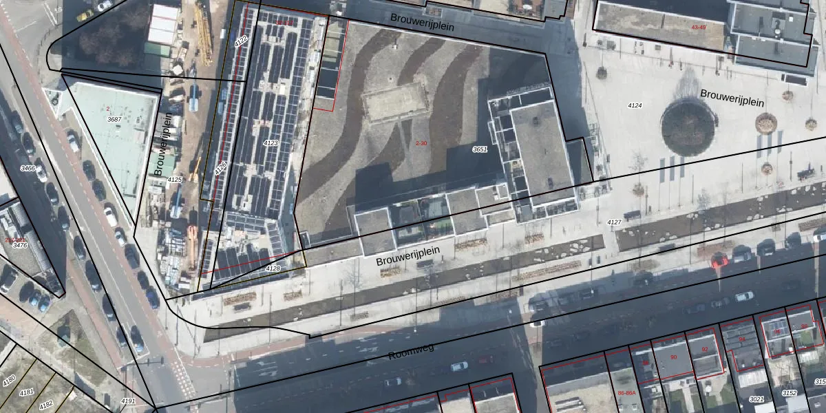 Het perceel waarop Brouwerijplein 20-25 staat heeft een oppervlakte van 2772 m². Dit is een zeer groot perceel. De perceeloppervlakte wordt geregistreerd door het Kadaster. Gedetailleerde informatie over de maten van dit perceel kunt u vinden in het rapport Kadastrale kaart met maatvoering van Brouwerijplein 20-25.
