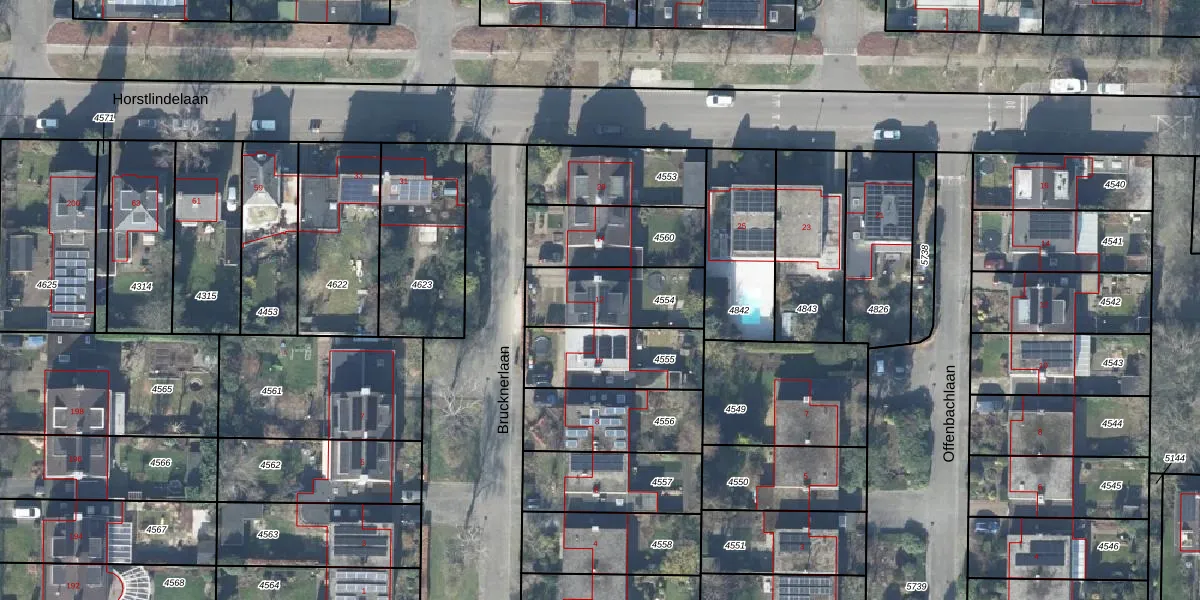 Het perceel waarop Brucknerlaan 12 staat heeft een oppervlakte van 307 m². Dit is een groot perceel. De perceeloppervlakte wordt geregistreerd door het Kadaster. Gedetailleerde informatie over de maten van dit perceel kunt u vinden in het rapport Kadastrale kaart met maatvoering van Brucknerlaan 12.