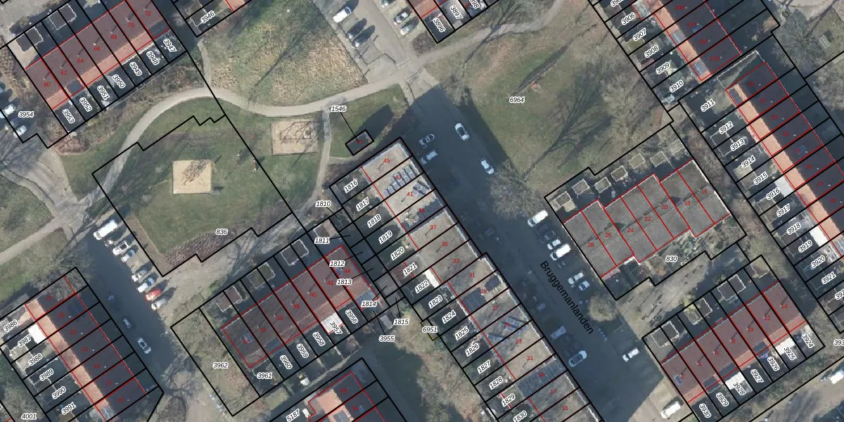 Het perceel waarop Bruggemanlanden 39 staat heeft een oppervlakte van 98 m². Dit is een klein perceel. De perceeloppervlakte wordt geregistreerd door het Kadaster. Gedetailleerde informatie over de maten van dit perceel kunt u vinden in het rapport Kadastrale kaart met maatvoering van Bruggemanlanden 39.