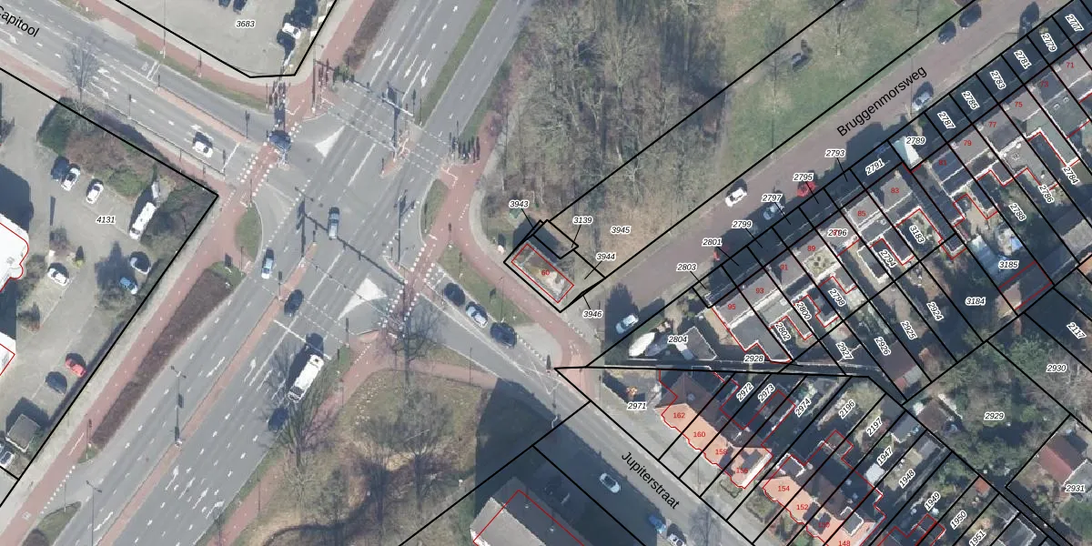 Het perceel waarop Bruggenmorsweg 60 staat heeft een oppervlakte van 125 m². Dit is een middelgroot perceel. De perceeloppervlakte wordt geregistreerd door het Kadaster. Gedetailleerde informatie over de maten van dit perceel kunt u vinden in het rapport Kadastrale kaart met maatvoering van Bruggenmorsweg 60.