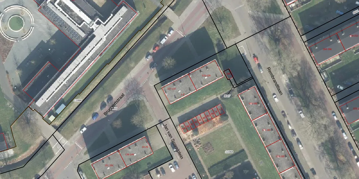 Het perceel waarop Bruggertstraat 131 staat heeft een oppervlakte van 8679 m². Dit is een zeer groot perceel. De perceeloppervlakte wordt geregistreerd door het Kadaster. Gedetailleerde informatie over de maten van dit perceel kunt u vinden in het rapport Kadastrale kaart met maatvoering van Bruggertstraat 131.
