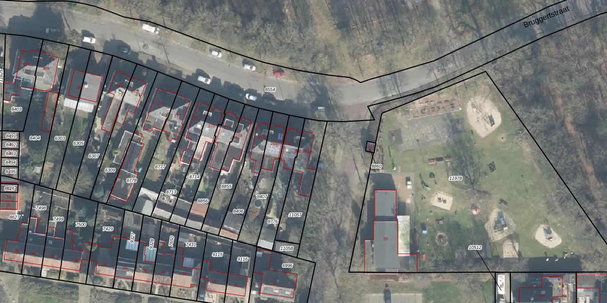 Het perceel waarop Bruggertstraat 261 staat heeft een oppervlakte van 321 m². Dit is een groot perceel. De perceeloppervlakte wordt geregistreerd door het Kadaster. Gedetailleerde informatie over de maten van dit perceel kunt u vinden in het rapport Kadastrale kaart met maatvoering van Bruggertstraat 261.
