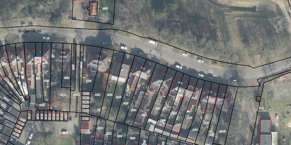 Het perceel waarop Bruggertstraat 281 staat heeft een oppervlakte van 318 m². Dit is een groot perceel. De perceeloppervlakte wordt geregistreerd door het Kadaster. Gedetailleerde informatie over de maten van dit perceel kunt u vinden in het rapport Kadastrale kaart met maatvoering van Bruggertstraat 281.