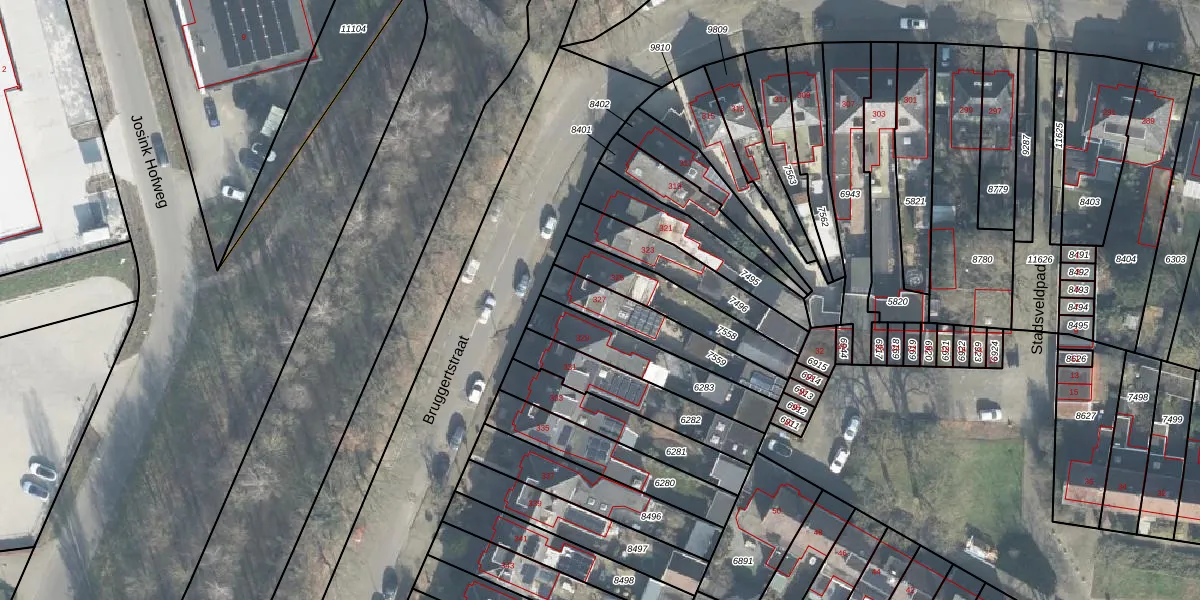 Het perceel waarop Bruggertstraat 327 staat heeft een oppervlakte van 220 m². Dit is een middelgroot perceel. De perceeloppervlakte wordt geregistreerd door het Kadaster. Gedetailleerde informatie over de maten van dit perceel kunt u vinden in het rapport Kadastrale kaart met maatvoering van Bruggertstraat 327.
