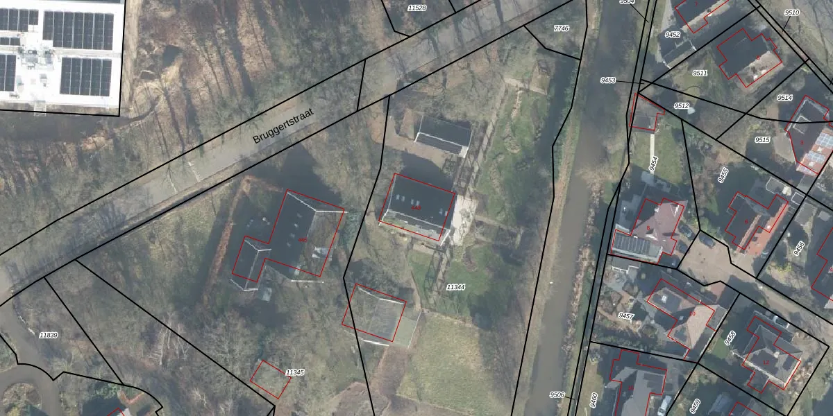 Het perceel waarop Bruggertstraat 443 staat heeft een oppervlakte van 4775 m². Dit is een zeer groot perceel. De perceeloppervlakte wordt geregistreerd door het Kadaster. Gedetailleerde informatie over de maten van dit perceel kunt u vinden in het rapport Kadastrale kaart met maatvoering van Bruggertstraat 443.
