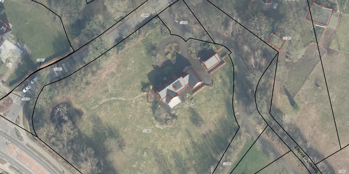 Het perceel waarop Bruggertstraat 453 staat heeft een oppervlakte van 9574 m². Dit is een zeer groot perceel. De perceeloppervlakte wordt geregistreerd door het Kadaster. Gedetailleerde informatie over de maten van dit perceel kunt u vinden in het rapport Kadastrale kaart met maatvoering van Bruggertstraat 453.