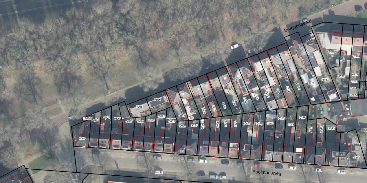 Het perceel waarop Bruggertstraat 55 staat heeft een oppervlakte van 133 m². Dit is een middelgroot perceel. De perceeloppervlakte wordt geregistreerd door het Kadaster. Gedetailleerde informatie over de maten van dit perceel kunt u vinden in het rapport Kadastrale kaart met maatvoering van Bruggertstraat 55.