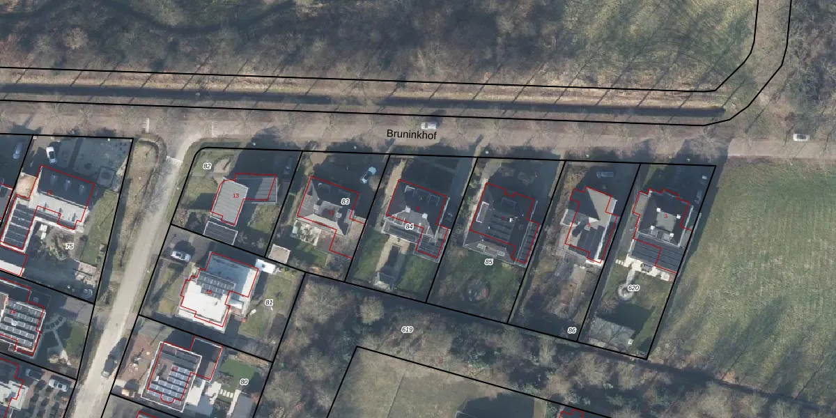 Het perceel waarop Bruninkhof 9 staat heeft een oppervlakte van 695 m². Dit is een groot perceel. De perceeloppervlakte wordt geregistreerd door het Kadaster. Gedetailleerde informatie over de maten van dit perceel kunt u vinden in het rapport Kadastrale kaart met maatvoering van Bruninkhof 9.