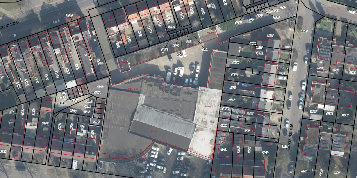 Het perceel waarop Brusselstraat 4-7 staat heeft een oppervlakte van 5690 m². Dit is een zeer groot perceel. De perceeloppervlakte wordt geregistreerd door het Kadaster. Gedetailleerde informatie over de maten van dit perceel kunt u vinden in het rapport Kadastrale kaart met maatvoering van Brusselstraat 4-7.