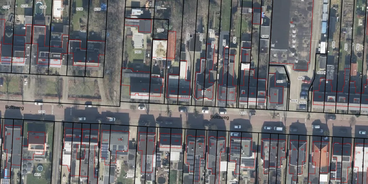 Het perceel waarop Bultsweg 108 staat heeft een oppervlakte van 527 m². Dit is een groot perceel. De perceeloppervlakte wordt geregistreerd door het Kadaster. Gedetailleerde informatie over de maten van dit perceel kunt u vinden in het rapport Kadastrale kaart met maatvoering van Bultsweg 108.
