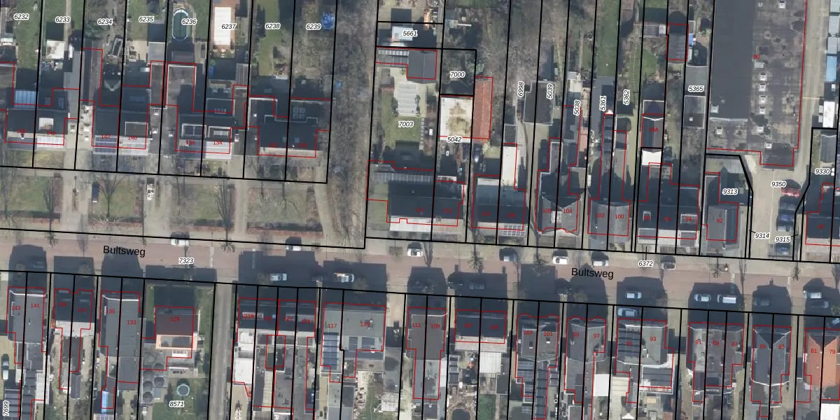 Het perceel waarop Bultsweg 114 staat heeft een oppervlakte van 734 m². Dit is een groot perceel. De perceeloppervlakte wordt geregistreerd door het Kadaster. Gedetailleerde informatie over de maten van dit perceel kunt u vinden in het rapport Kadastrale kaart met maatvoering van Bultsweg 114.