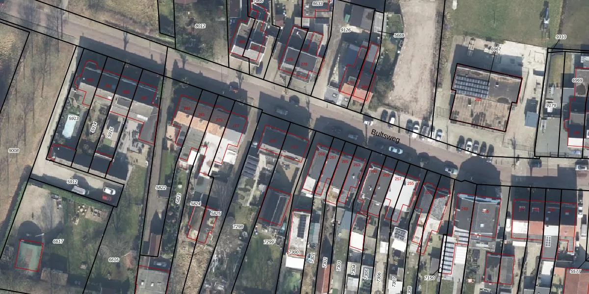 Het perceel waarop Bultsweg 271 staat heeft een oppervlakte van 833 m². Dit is een groot perceel. De perceeloppervlakte wordt geregistreerd door het Kadaster. Gedetailleerde informatie over de maten van dit perceel kunt u vinden in het rapport Kadastrale kaart met maatvoering van Bultsweg 271.