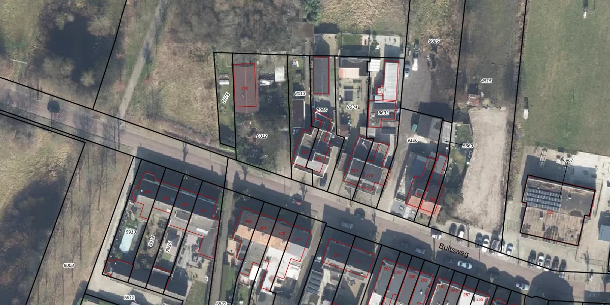Het perceel waarop Bultsweg 284 staat heeft een oppervlakte van 315 m². Dit is een groot perceel. De perceeloppervlakte wordt geregistreerd door het Kadaster. Gedetailleerde informatie over de maten van dit perceel kunt u vinden in het rapport Kadastrale kaart met maatvoering van Bultsweg 284.