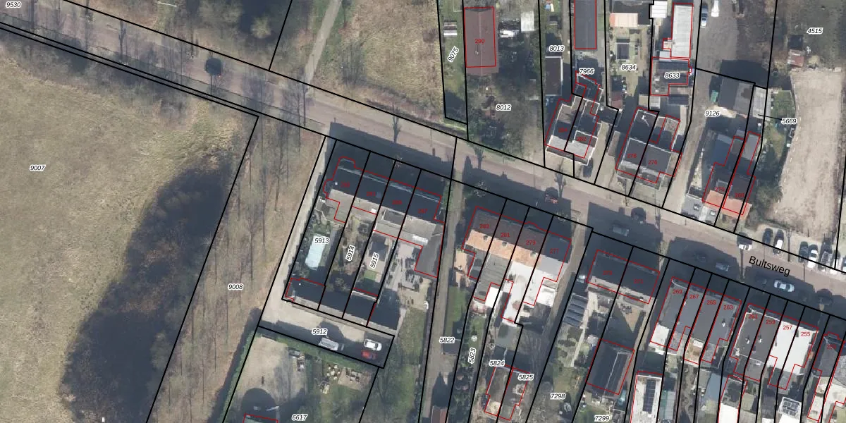 Bultsweg 287 is gelegen op kadastraal perceel LNK00E6616. Deze kadastrale aanduiding is uniek en wordt gebruikt door het Kadaster om eigendomsrechten en andere zakelijke rechten vast te leggen. Het perceel maakt onderdeel uit van de kadastrale gemeente Lonneker.