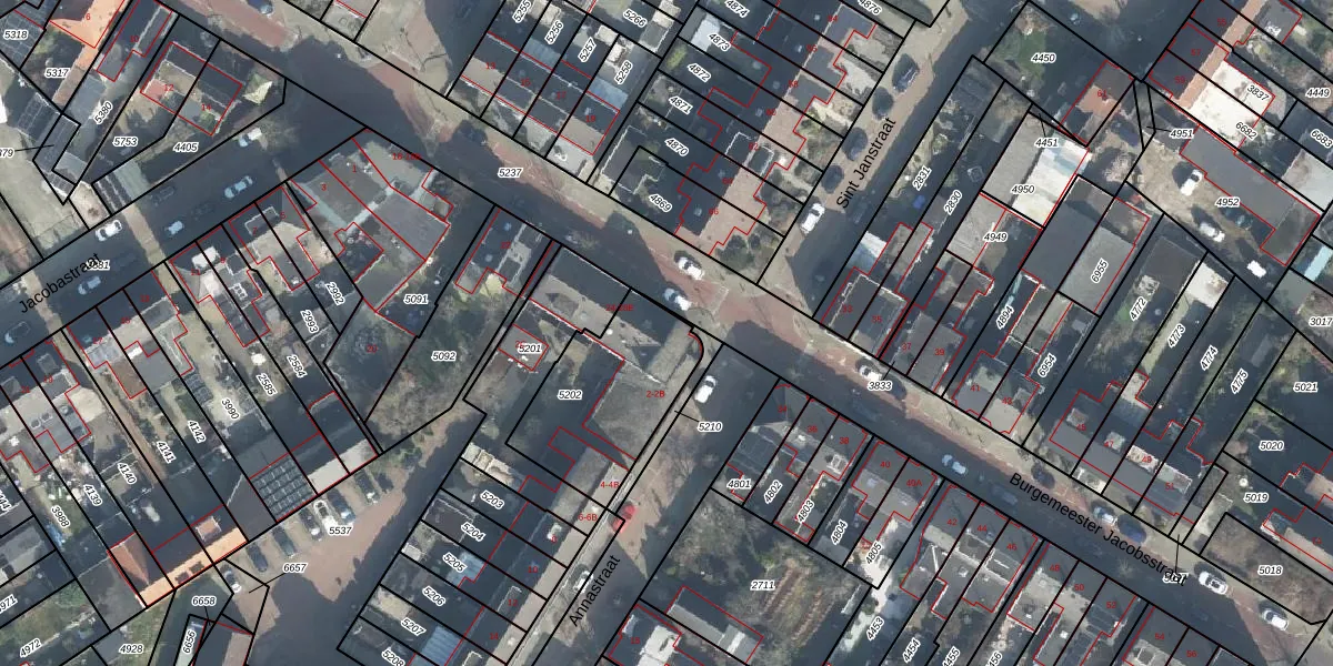 Het perceel waarop Burgemeester Jacobsstraat 28 staat heeft een oppervlakte van 496 m². Dit is een groot perceel. De perceeloppervlakte wordt geregistreerd door het Kadaster. Gedetailleerde informatie over de maten van dit perceel kunt u vinden in het rapport Kadastrale kaart met maatvoering van Burgemeester Jacobsstraat 28.