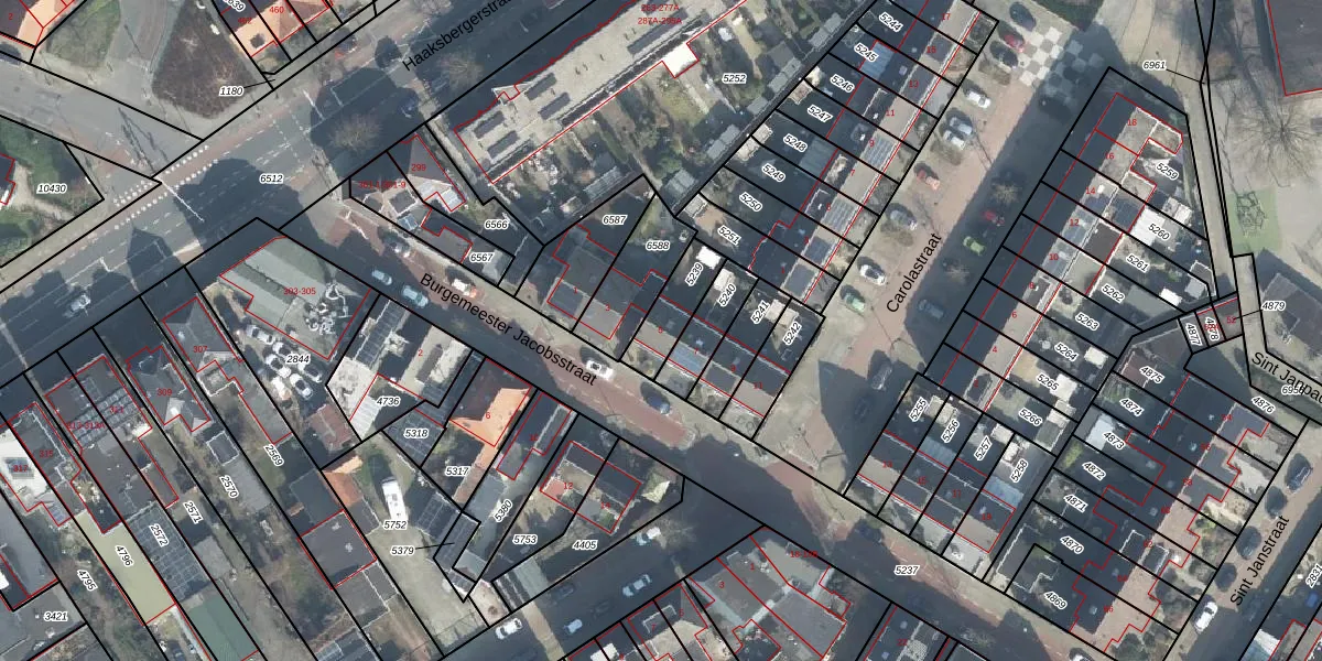 Burgemeester Jacobsstraat 5 is gelegen op kadastraal perceel LNK00H5239. Deze kadastrale aanduiding is uniek en wordt gebruikt door het Kadaster om eigendomsrechten en andere zakelijke rechten vast te leggen. Het perceel maakt onderdeel uit van de kadastrale gemeente Lonneker.
