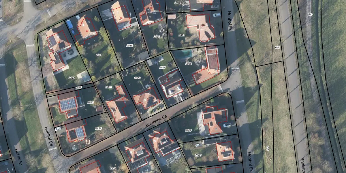 Buursink Es 5 is gelegen op kadastraal perceel LNK00AA2819. Deze kadastrale aanduiding is uniek en wordt gebruikt door het Kadaster om eigendomsrechten en andere zakelijke rechten vast te leggen. Het perceel maakt onderdeel uit van de kadastrale gemeente Lonneker.