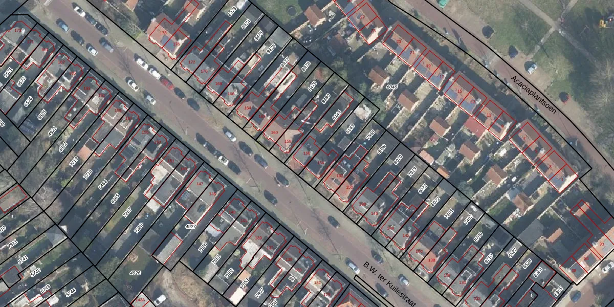 Het perceel waarop B.W. ter Kuilestraat 156 staat heeft een oppervlakte van 216 m². Dit is een middelgroot perceel. De perceeloppervlakte wordt geregistreerd door het Kadaster. Gedetailleerde informatie over de maten van dit perceel kunt u vinden in het rapport Kadastrale kaart met maatvoering van B.W. ter Kuilestraat 156.
