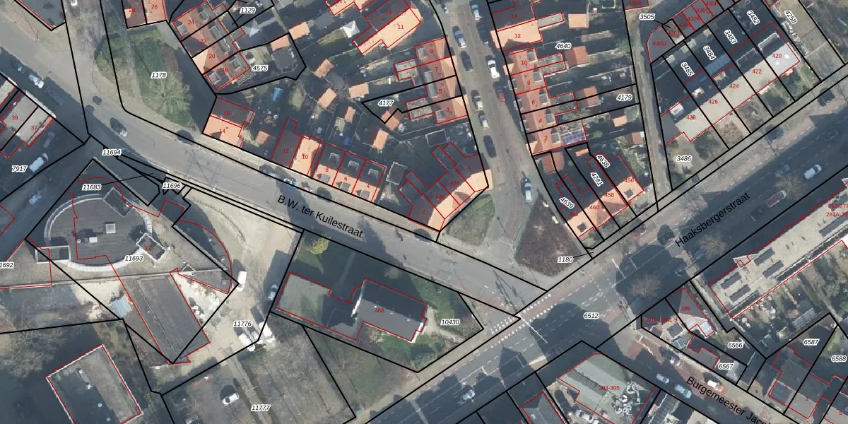 Het perceel waarop B.W. ter Kuilestraat 2 staat heeft een oppervlakte van 7712 m². Dit is een zeer groot perceel. De perceeloppervlakte wordt geregistreerd door het Kadaster. Gedetailleerde informatie over de maten van dit perceel kunt u vinden in het rapport Kadastrale kaart met maatvoering van B.W. ter Kuilestraat 2.