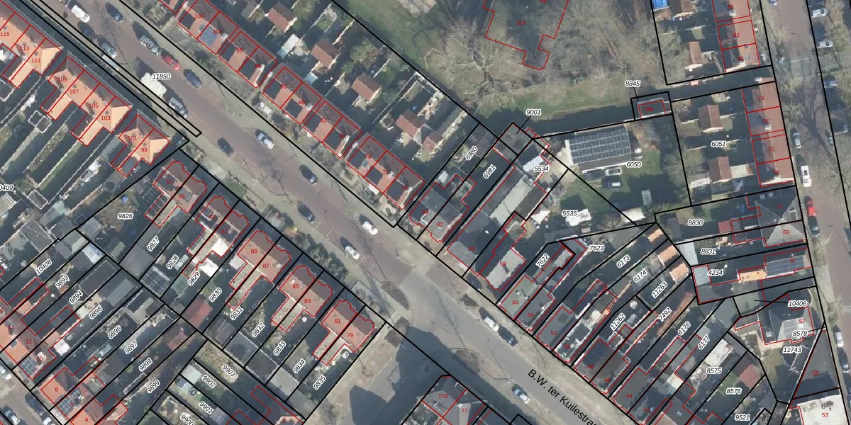 Het perceel waarop B.W. ter Kuilestraat 64 staat heeft een oppervlakte van 184 m². Dit is een middelgroot perceel. De perceeloppervlakte wordt geregistreerd door het Kadaster. Gedetailleerde informatie over de maten van dit perceel kunt u vinden in het rapport Kadastrale kaart met maatvoering van B.W. ter Kuilestraat 64.