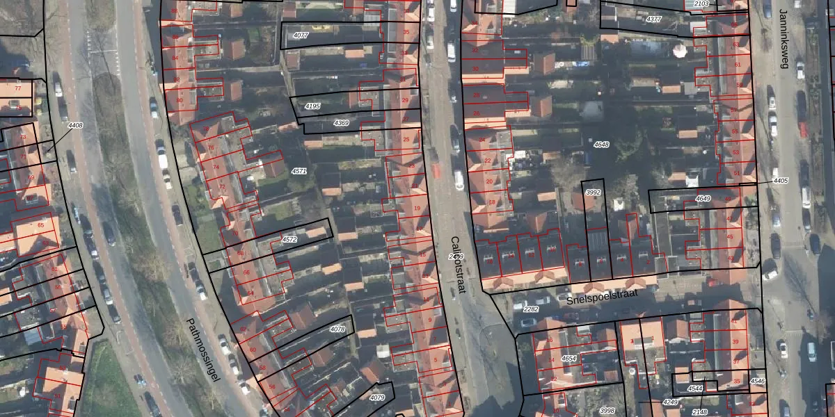 Het perceel waarop Calicotstraat 19 staat heeft een oppervlakte van 7010 m². Dit is een zeer groot perceel. De perceeloppervlakte wordt geregistreerd door het Kadaster. Gedetailleerde informatie over de maten van dit perceel kunt u vinden in het rapport Kadastrale kaart met maatvoering van Calicotstraat 19.