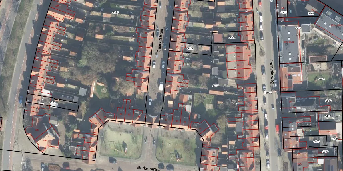 Het perceel waarop Calicotstraat 42 staat heeft een oppervlakte van 4501 m². Dit is een zeer groot perceel. De perceeloppervlakte wordt geregistreerd door het Kadaster. Gedetailleerde informatie over de maten van dit perceel kunt u vinden in het rapport Kadastrale kaart met maatvoering van Calicotstraat 42.