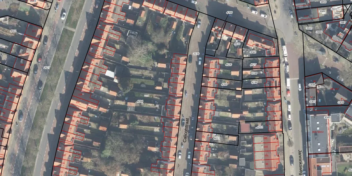 Het perceel waarop Calicotstraat 61 staat heeft een oppervlakte van 8551 m². Dit is een zeer groot perceel. De perceeloppervlakte wordt geregistreerd door het Kadaster. Gedetailleerde informatie over de maten van dit perceel kunt u vinden in het rapport Kadastrale kaart met maatvoering van Calicotstraat 61.