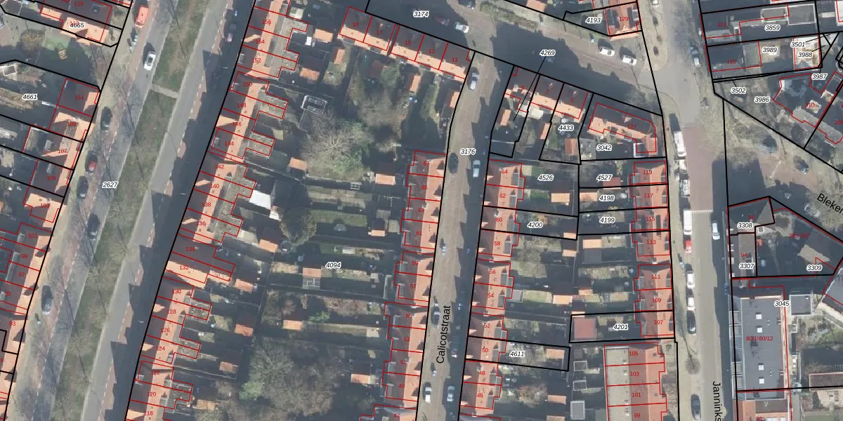 Het perceel waarop Calicotstraat 63 staat heeft een oppervlakte van 8551 m². Dit is een zeer groot perceel. De perceeloppervlakte wordt geregistreerd door het Kadaster. Gedetailleerde informatie over de maten van dit perceel kunt u vinden in het rapport Kadastrale kaart met maatvoering van Calicotstraat 63.