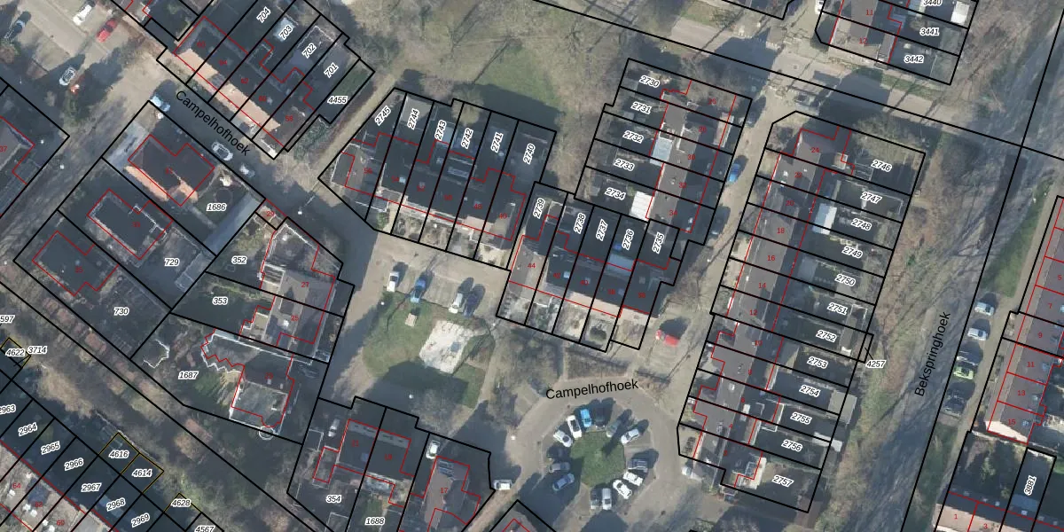 Het perceel waarop Campelhofhoek 44 staat heeft een oppervlakte van 166 m². Dit is een middelgroot perceel. De perceeloppervlakte wordt geregistreerd door het Kadaster. Gedetailleerde informatie over de maten van dit perceel kunt u vinden in het rapport Kadastrale kaart met maatvoering van Campelhofhoek 44.