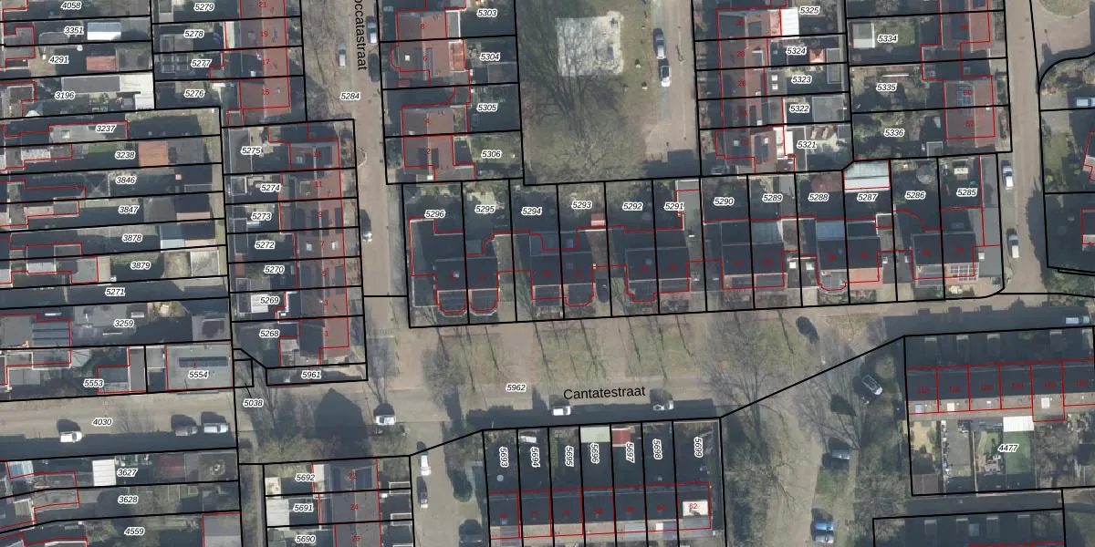 Cantatestraat 19 is gelegen op kadastraal perceel LNK00F5294. Deze kadastrale aanduiding is uniek en wordt gebruikt door het Kadaster om eigendomsrechten en andere zakelijke rechten vast te leggen. Het perceel maakt onderdeel uit van de kadastrale gemeente Lonneker.